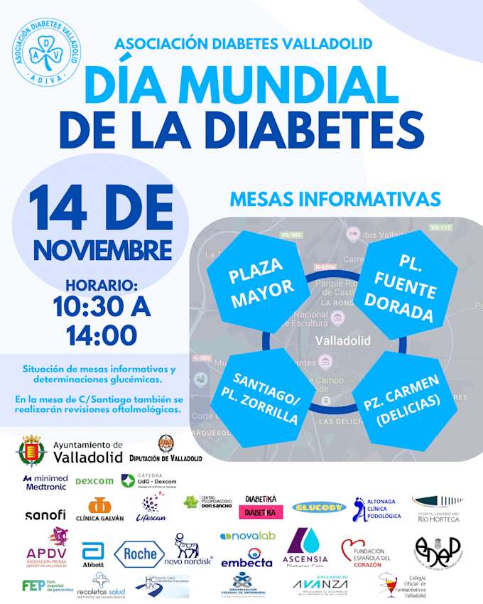 Como cada año, la Asociación Diabetes Valladolid (ADIVA) se une a la conmemoración del Día Mundial de la Diabetes (DMD), una fecha clave para concienciar sobre la importancia de la