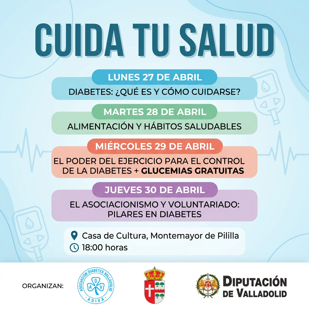 La Asociación Diabetes Valladolid (ADIVA), con la colaboración de la Diputación Provincial de Valladolid, pone en marcha el proyecto “Aulas de Diabetes en el Medio Rural: educar, acompañar y cuidar 2026”,