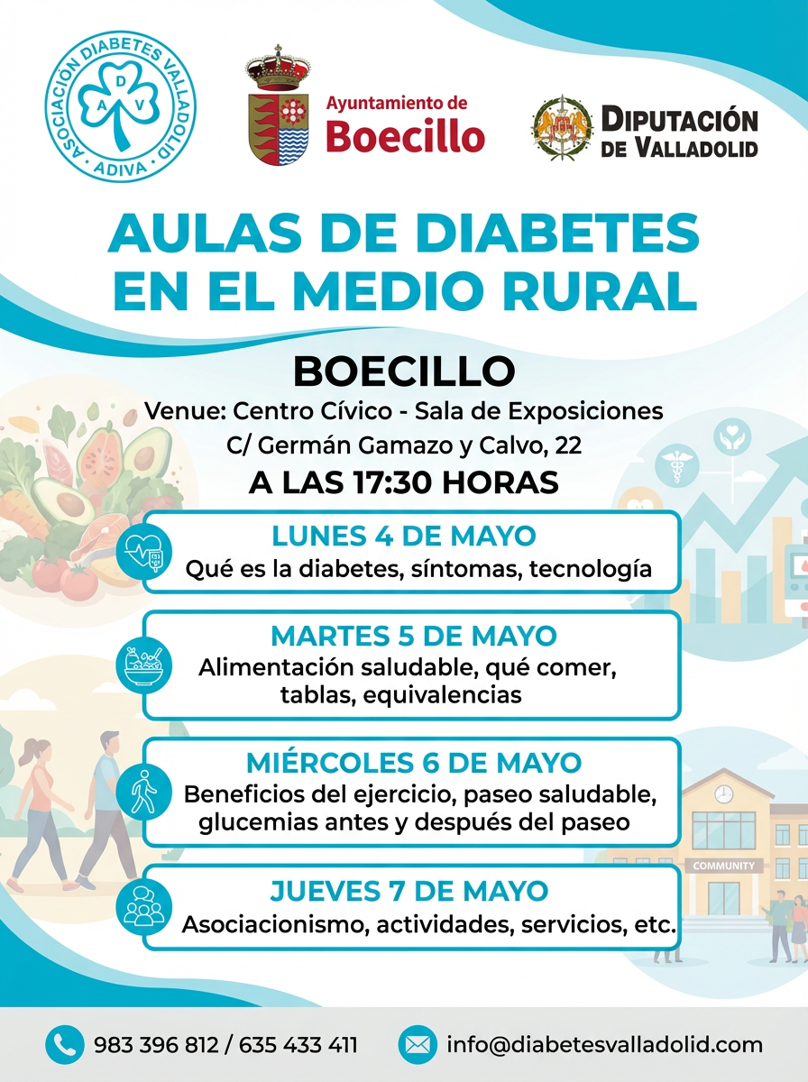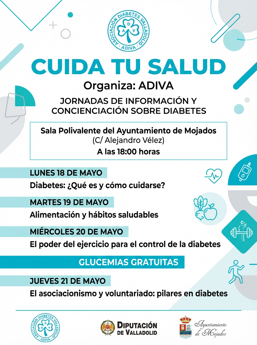 La Asociación de la Diabetes de Valladolid (ADIVA) y la Diputación de Valladolid organizan del 27 al 30 de abril unas jornadas de salud gratuitas y abiertas a toda la ciudadanía bajo el título «Cuida Tu Salud»,