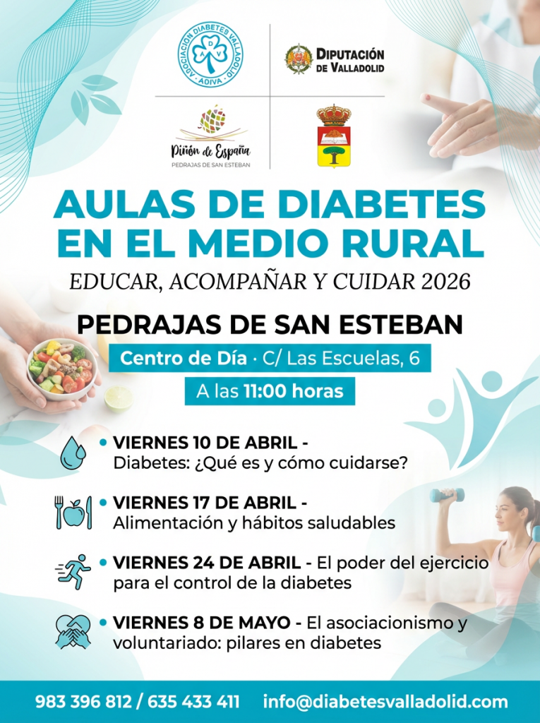 La Asociación Diabetes Valladolid (ADIVA), con la colaboración de la Diputación Provincial de Valladolid, pone en marcha el proyecto “Aulas de Diabetes en el Medio Rural: educar, acompañar y cuidar 2026”, una iniciativa que nace con el objetivo de acercar información, formación y acompañamiento a distintos municipios de la provincia.