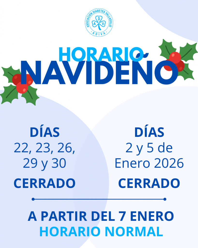 Desde la Asociación Diabetes Valladolid (ADIVA) informamos sobre los días de cierre y la modificación de nuestro horario de atención al público durante el periodo navideño.